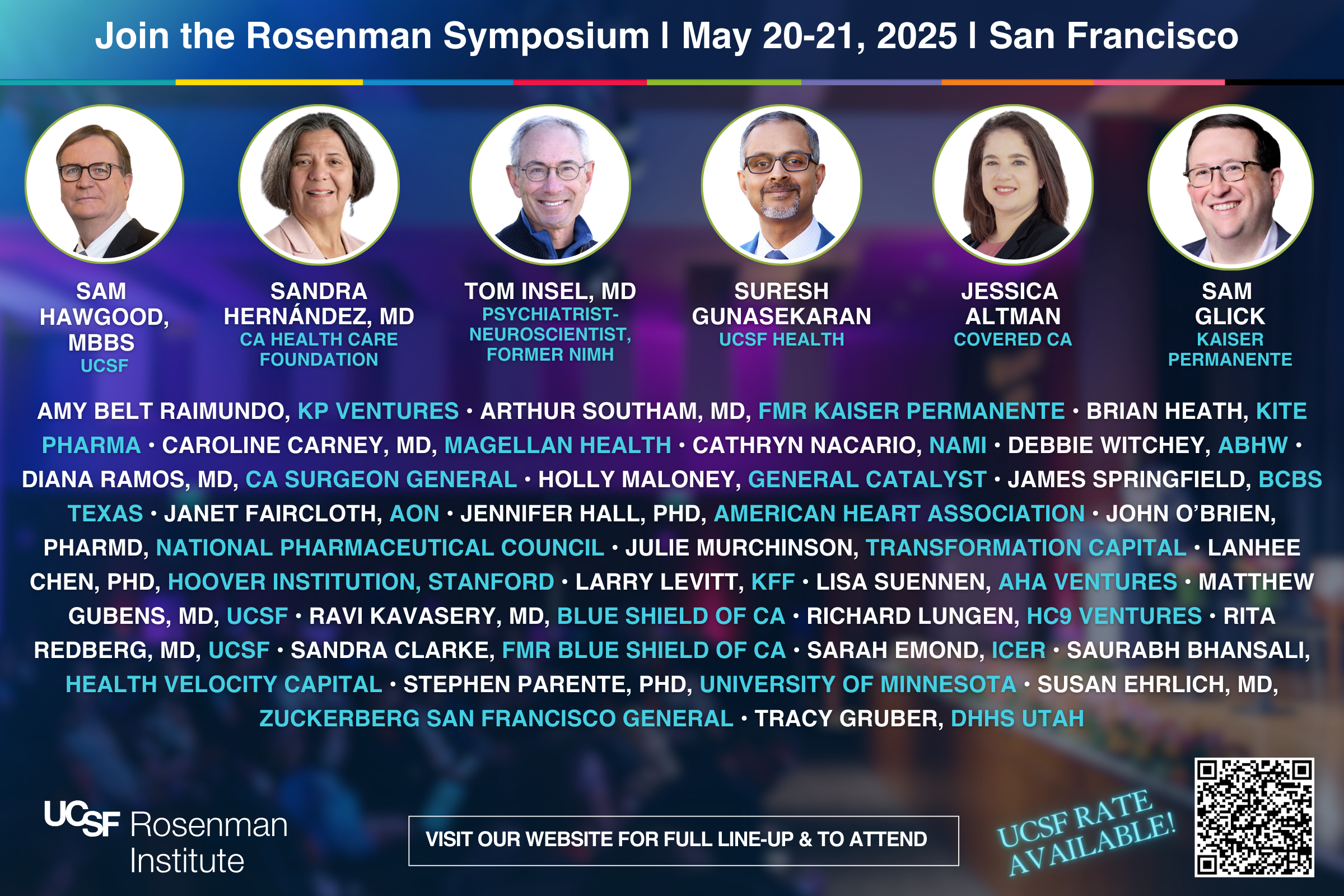 https://rosenmaninstitute.org/annual-symposium/Join top healthcare innovators, providers, and patients at the 9th Annual UCSF Rosenman Symposium to explore groundbreaking strategies that advance access and affordability. By uniting diverse perspectives, we will spark meaningful change and ultimately unlock new opportunities in the healthcare landscape.